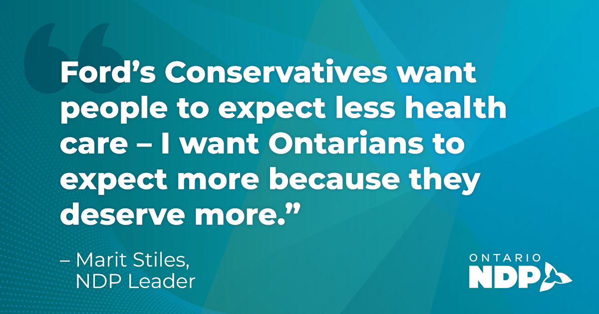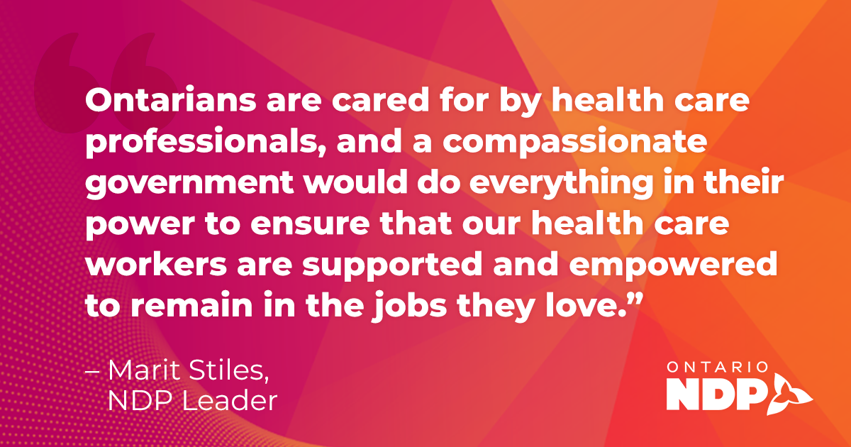 Ontario is currently facing the worst health care crisis in a generation. Hospitals are critically understaffed and barely able to keep up with the demand, and a growing number of nurses and health care workers are leaving the profession every day. Recently, we've seen a wave of closures of operating rooms, hospital units, and entire emergency rooms. Ontarians are waiting up to 20 or even 50 hours in the ER just to see a nurse or doctor.